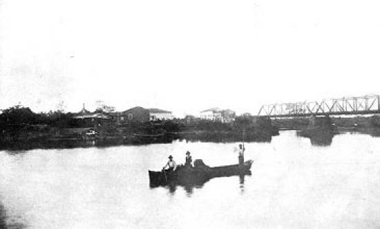 Rio Cubatão, próximo à ponte da estrada de ferro Santos/Jundiaí, em 1920