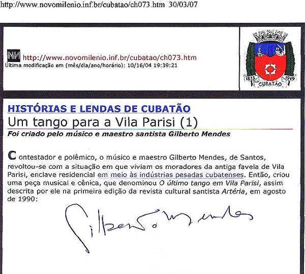 Talvez seja esta a primeira página autografada na Internet mundial! Em 30/3/2007, o maestro Gilberto Mendes autografou em Cubatão/SP a cópia impressa desta página, que agora retorna ao meio virtual...