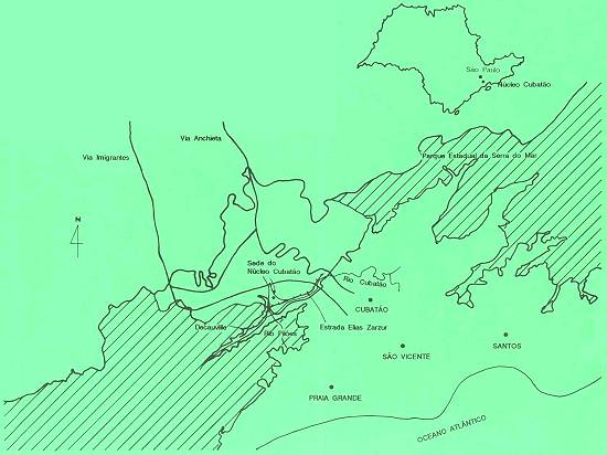 115.000 hectares. Uma área que abrange quinze municípios envolvendo a região metropolitana da Capital e a Baixada Santista: Cubatão, Santos, São Paulo, Bertioga, São Bernardo do Campo, Santo André, Praia Grande, São Vicente, Mongaguá, Itanhaém,