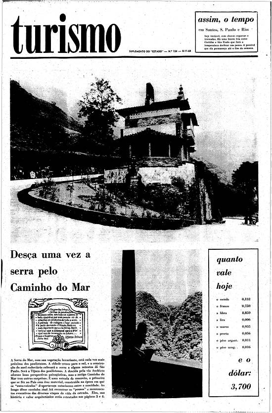 serra a alguns minutos de São Paulo. Será a Tijuca dos paulistanos. A descida pela via Anchieta oferece boas perspectivas paisagísticas, mas o antigo Caminho do Mar tem outras surpresas. É uma estrada de concreto, a primeira que se fez no País com