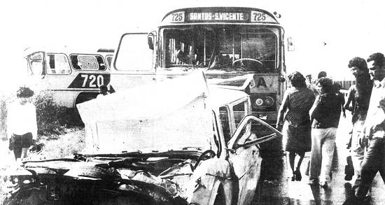 ônibus que transportava trabalhadores para o Parque Industrial de Cubatão teria sido o responsável pelo início da seqüência de acidentes. De outro,