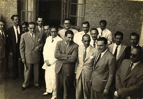 Primeiros funcionários da prefeitura cubatense, em 1949, no antigo Paço, na Av. 9 de
