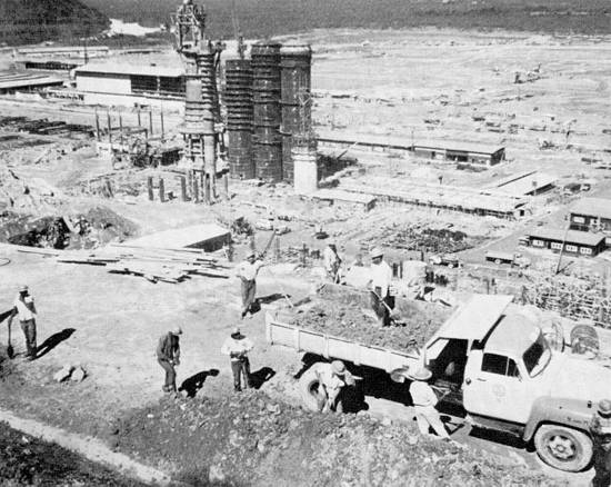 Trabalhadores preparam as fundações da Cosipa, no final da década de 1950