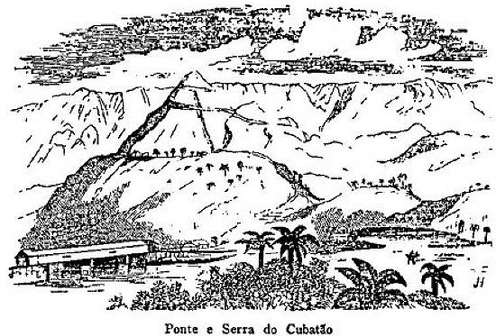 Na gravura, a atual estrada real, relativamente ainda muito sinuosa, mostra o seu forte contraste com a estrada quase vertical feita pelos primeiros jesuítas, antes daquela que o dr. Kidder nos descreve. A estrada dos jesuítas é a linha escura que parece dividir a montanha cônica em partes iguais.