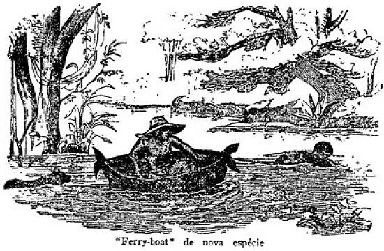 Em algumas regiões do Brasil, onde há tantos cursos d'água utilizáveis pela navegação, em certas ocasiões se improvisavam ferry-boats da forma mais primitiva. Um couro de boi constituía o principal material de construção, e um escravo servia de meio de propulsão.