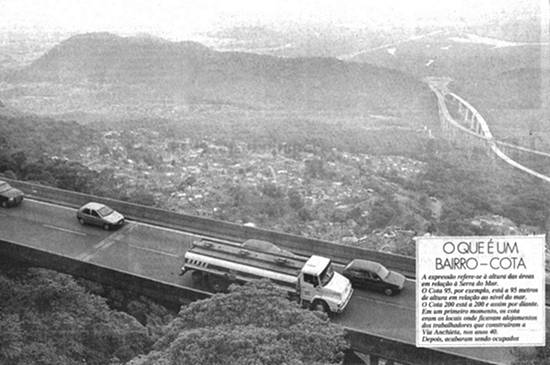 A expressão refere-se à altura das áreas em relação à Serra do Mar. O Cota 95, por exemplo, está a 95
