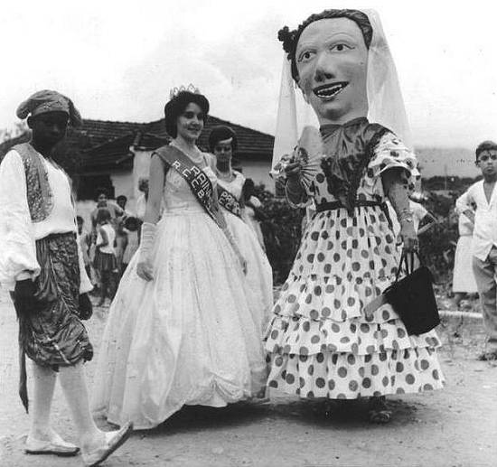 Bloco Cabeçudos da Baixada e suas rainha e princesa, em 1962