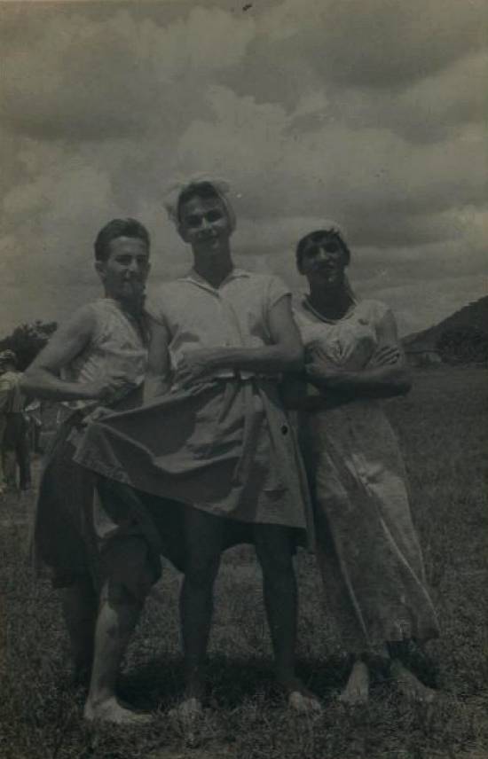 Baile do Esporte Clube Cubatão em 1955. Ao centro, de pé, Lurdes Antiorio