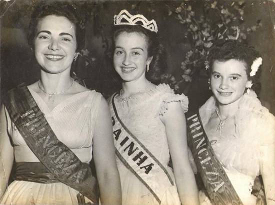 Rainha e princesas do Carnaval do Esporte Clube Cubatão em 1955: Palmira Ferreira, Irene
