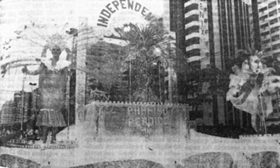 A escola Independência, em sua apresentação nas avenidas da praia de Santos, em 1990
