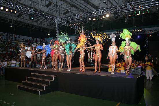 fantasias de passistas. No palco, se apresentaram com passos cadenciados e em frente aos jurados, sambaram pra valer, onde foram analisadas no