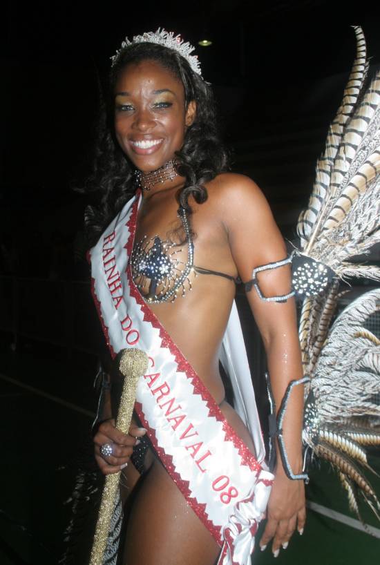 Michelle, a rainha do carnaval cubatense em 2008, momentos após receber a faixa