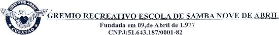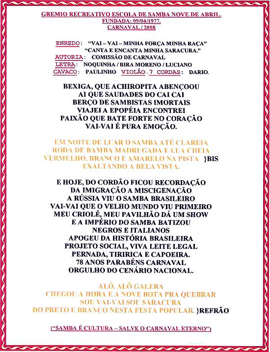 documentação oficial da escola Nove de Abril para o carnaval 2008