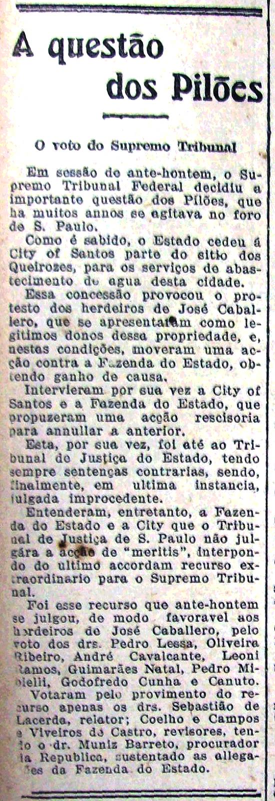 anteontem se julgou, de modo favorável aos herdeiros de José Caballero, pelo voto dos drs. Pedro Lessa, Oliveira Ribeiro, André Cavalcante, Leoni