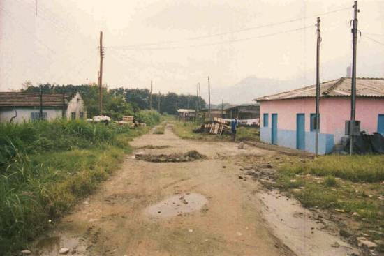 entre as indústrias e a Cosipa, numa parte de terreno desnivelado, que quando tem temporal violento, fica em parte alagado.