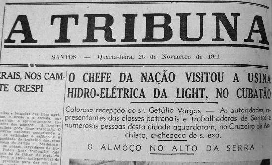 O sr. Getúlio Vargas, estendendo sua visita ao município de Santos, foi ontem ao distrito do Cubatão, onde a Light mantém gigantesca usina hidrelétrica.