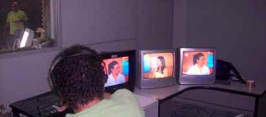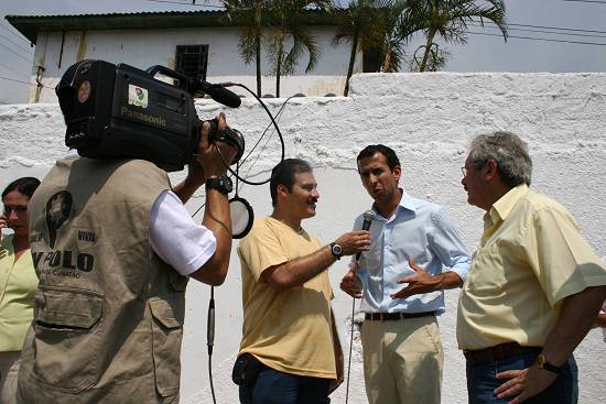Equipe da TV Pólo entrevista autoridades locais, em 16 de janeiro de 2006
