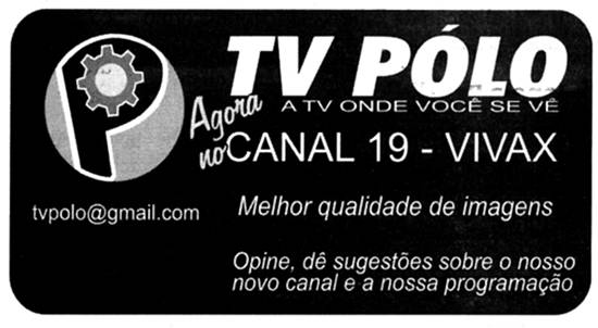 Futuro - A busca pela democratização da informação é ponto fundamental dos cerca de 80 canais comunitários espalhados pelo Brasil. Por isso, a TV Pólo, integrante da Associação Brasileira dos Canais Comunitários (ABCCOM), participa ativamente das ações que visam transpor as TVs comunitárias a cabo para o sinal aberto, a exemplo do que ocorreu recentemente com as TVs Legislativas, quando o Governo Federal autorizou sua transmissão em sinal aberto. Considerando que a lei da TV a cabo não mudou e que a TV Legislativa também é regida por ela, cabe aqui o direito da isonomia, dando o mesmo direito às TVs comunitárias de operar em sinal aberto.