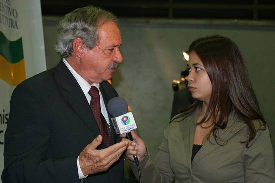 Jornalista Joyce de Castro entrevista para a TV Pólo o prefeito de Cubatão, Clermont Castor, no lançamento do livro da Agenda 21 Cubatão 2020, em 31 de agosto de 2006