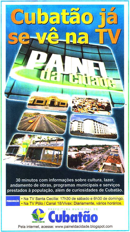 Um programa que começou no rádio e depois passou também à televisão e à Internet, é o Painel da Cidade, produzido semanalmente pelo Departamento de Imprensa da Prefeitura de Cubatão e distribuído gratuitamente às emissoras locais para divulgação, com noticiário de interesse da população, campanhas de esclarecimento e divulgação educativa e outras comunicações.
