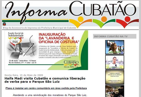 As pessoas poderão comentar as matérias registradas na página e apresentar propostas de melhorias para o programa pelo e-mail informacubatao@gmail.com. O noticiário para TV segue a nomenclatura do blog da Assessoria de Imprensa (www.informacubatao.blogspot.com). As notícias postadas no blog também poderão ser acessadas pelo site oficial da Prefeitura www.cubatao.sp.gov.br.