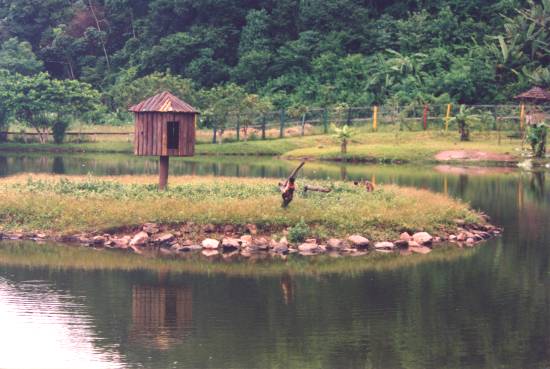 No meio do parque há um lago artificial, com duas ilhotas tomadas até então por sete macacos e apenas duas macacas, sendo uma filhote, em outra.