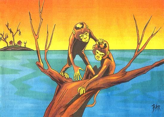 Aconteceu, realmente, em Cubatão, esta história do arco-da-velha, com um macaco fugindo de uma ilhota num bote improvisado. Uma das primeiras notícias foi dada pelo jornal O Estado de São Paulo, em 3 de julho de 1999: