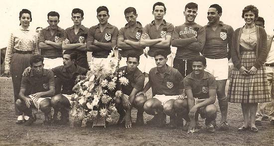 O time do Esporte Clube Cubatão, no festival do E. C. Jardim Casqueiro, em 1959. Em pé, da esquerda para a direita, a madrinha do E. C. J. Casqueiro,