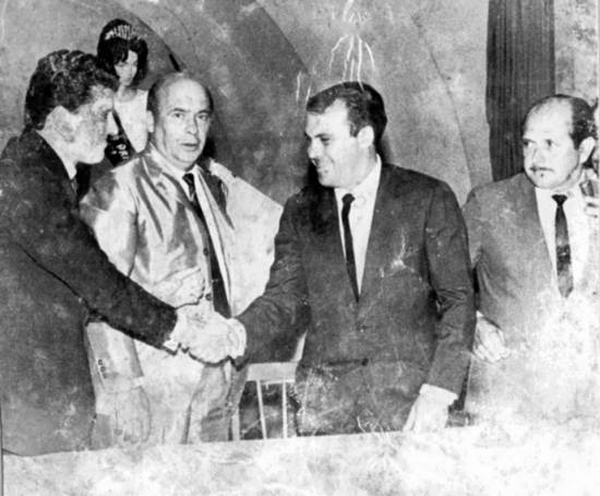 Transmissão de cargo de presidente do Esporte Clube Cubatão em 1969. Em pé, da esquerda para a direita: Arlindo Ferreira, Rubens Gonzalez, Bruno
