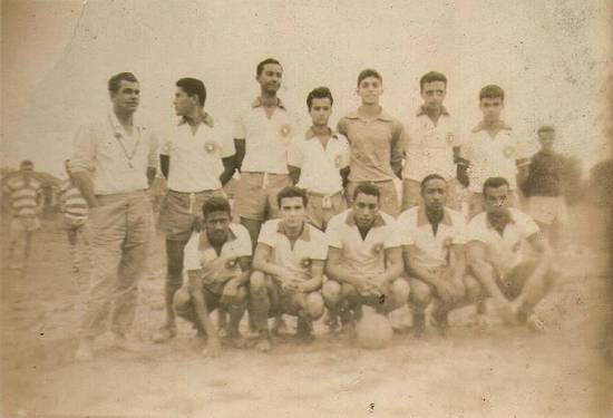 Time do Departamento de Estradas de Rodagem (DER) em 1958, com o goleiro Milton Spina, Valter e Sidnei Spina, entre outros jogadores. A maleta de