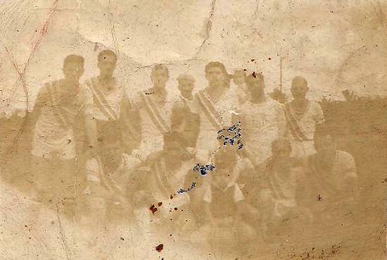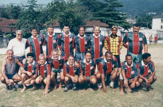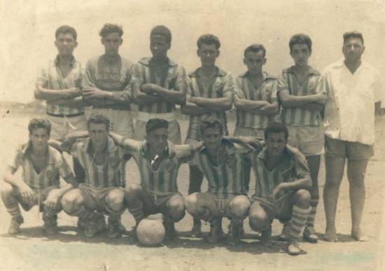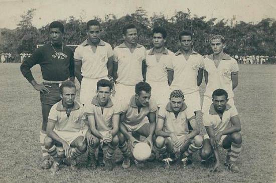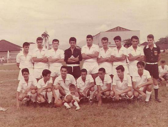 Time do Oleoduto Futebol Clube, com Domingão (segundo a partir da esquerda) e Hélvio Sodré (agachado, com a bola)