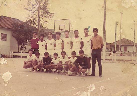 Futebol de Salão: equipe do Aymoré em 1967, na quadra do clube 2004 da Petrobrás, depois Grêmio dos Servidores. Enre os jogadores, da direita para a