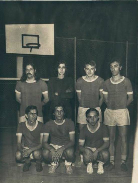 Futebol de Salão: equipe do Aymoré em 1974, com Jorge Reis, Arlindo Pedro, Gaúcho Preto, Ademir Borrego, João Henrique Liba, Saru, Carlos Alberto, Osmar