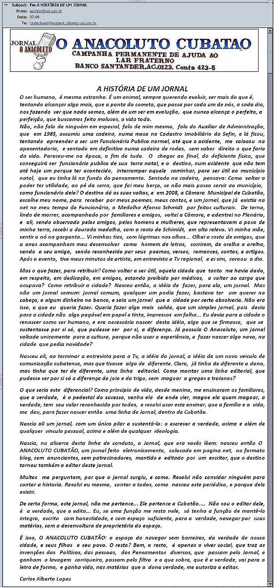 ANACOLUTO CUBATÃO, um jornal feito eletronicamente,
