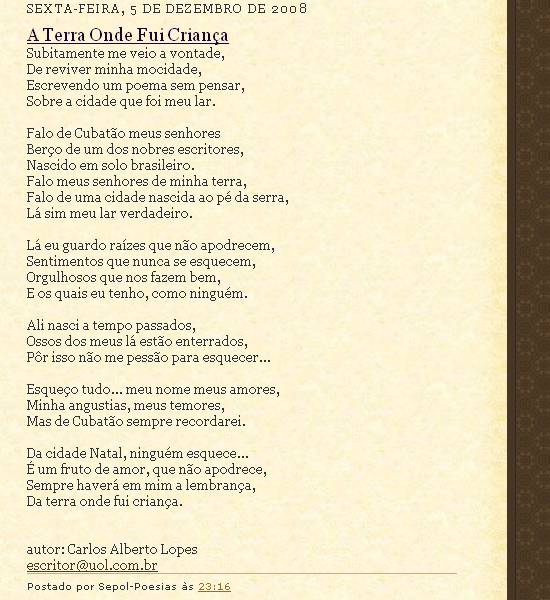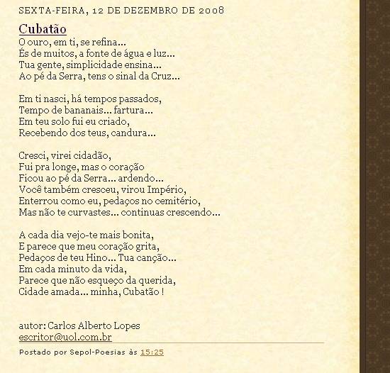 Imagem: captura de tela, Coletânea de Poesias de Carlos Alberto Lopes, em 11/9/2010