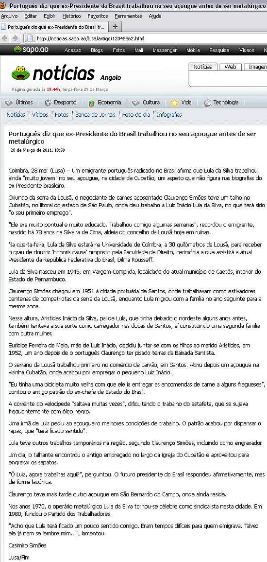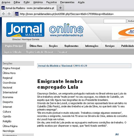 Coimbra, 28 mar (Lusa) - Um emigrante português radicado no Brasil afirma que Lula da Silva