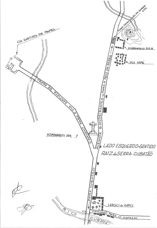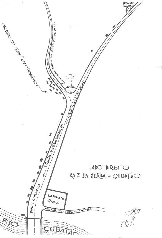 junto ao caminho para a Companhia Santista de Papel, hoje local ocupado pela Refinaria Presidente Bernardes.