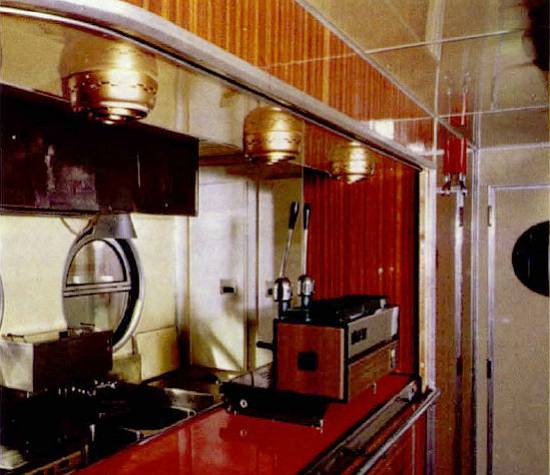 Interior do vagão-buffet no trem húngaro da RFFSA