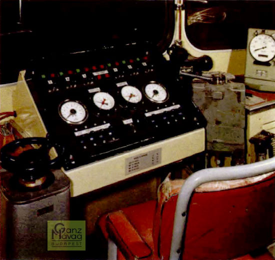 Interior da cabina de comando do trem húngaro da RFFSA