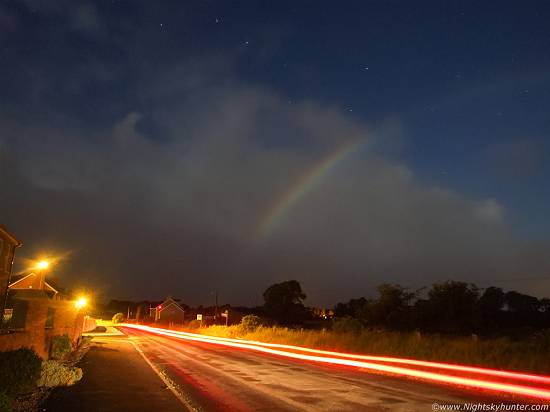Arco-íris lunar em Maghera, na Irlanda do Norte, às 1h47 BST (British Summer Time - Horário de Verão Britânico) da madrugada de 19 de julho de 2008, vendo-se também as estrelas da constelação Ursa