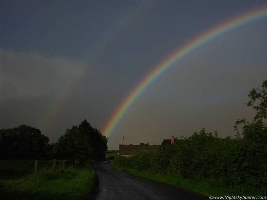 26 minutos depois, às 2h13 BST, formou-se um duplo arco-íris lunar no céu da mesma localidade da Irlanda do Norte
