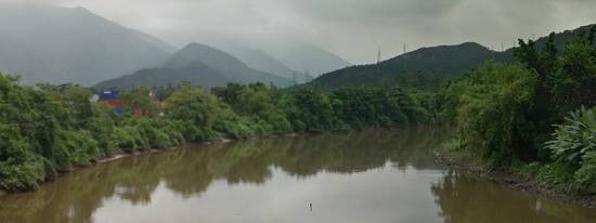 desde a ponte da Avenida Nove de Abril sobre o Rio Cubatão, conhecida como Ponte Arco-Íris.
