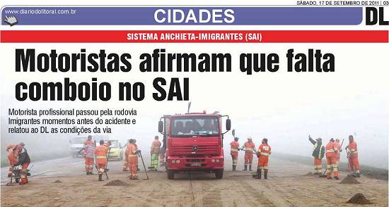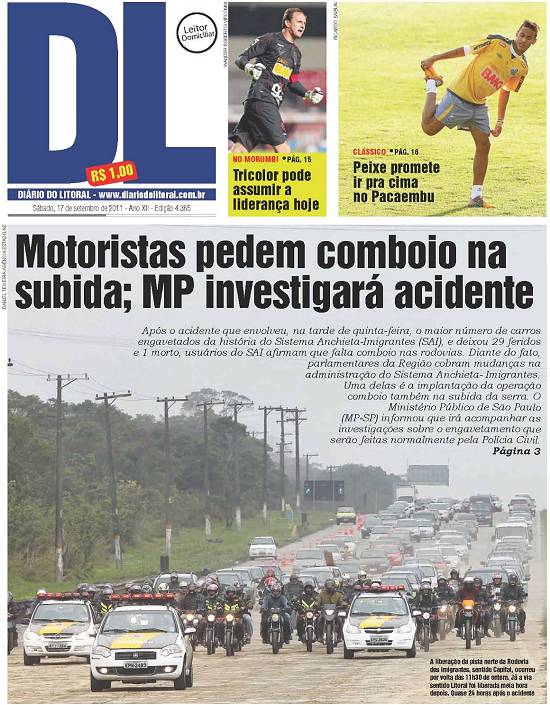 feridos. No sábado, dia 17 de setembro de 2011, o jornal santista Diário do Litoral registrou, nas páginas 1 e 3: