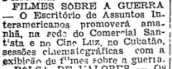 Filmes sobre a Segunda Guerra Mundial no Cine Luz, em Cubatão, em 27 de setembro de 1945