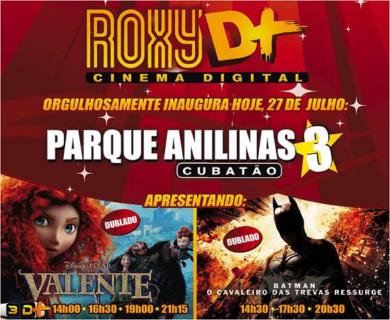 Anúncio da inauguração do Cine Roxy Digital 3 - Parque Anilinas, em Cubatão