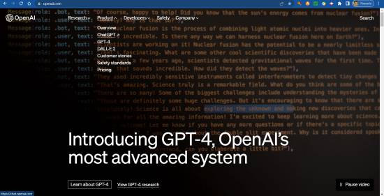 Página principal da organização OpenAI.com, mantenedora do ChatGPT-4