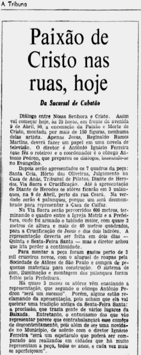 O Jubileu de Ouro da encenação mais tradicional em atividade da Baixada Santista, a Encenação da Paixão de Cristo de Cubatão, será laureado agora em um livro comemorativo, a ser lançado no dia 21/nov, às 18h, no Bloco Cultural da Cidade (Praça dos Emancipadores, s/nº).