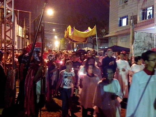 Apresentada pela primeira vez ao público em 27 de março de 1970, a encenação ao ar livre da Paixão de Cristo é a produção teatral mais longeva da Baixada Santista, com mais de 50 anos de apresentações e um grande elenco (mais de 200 atores/personagens). Estes são alguns registros fotográficos (pelo jornalista Carlos Pimentel Mendes, chefe de Imprensa da Secretaria Municipal de Comunicação Social - Secom/Prefeitura de Cubatão) da produção apresentada em 18 de abril de 2014, em procissão pelas ruas da região Central cubatense e sem seguida no Centro Social Urbano (CSU)/Parque do Trabalhador, em Cubatão: