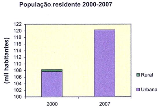 Com 120.271 habitantes em 2007, sua taxa de crescimento populacional foi de 1,58% ao ano entre 2000 e 2007, maior que a estadual (1,1%) e maior que a nacional (1,21%). O município apresentava, em 2000, um predomínio