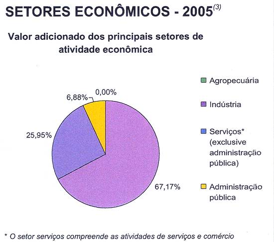 Industrial (VTI) e 0,6% do pessoal ocupado no Estado. Em relação ao Brasil, participa com 1,33% no VTI nacional, e 0,22% do pessoal ocupado na indústria. As principais divisões industriais são a metalurgia básica, a fabricação de produtos químicos,